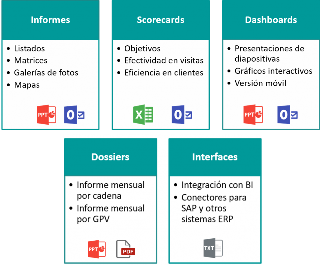 Gracias a la flexibilidad del sistema de Market Control, se pueden crear y combinar informes con los datos procedentes de cualquiera de los módulos disponibles.
