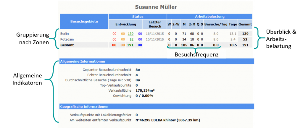 „Sie erhalten Planifikationen für Ihr Team, die sich an Gebiet und Verkaufspunktdichte sowie der Besuchszeit und -frequenz eines Verkaufspunkts orientieren.“