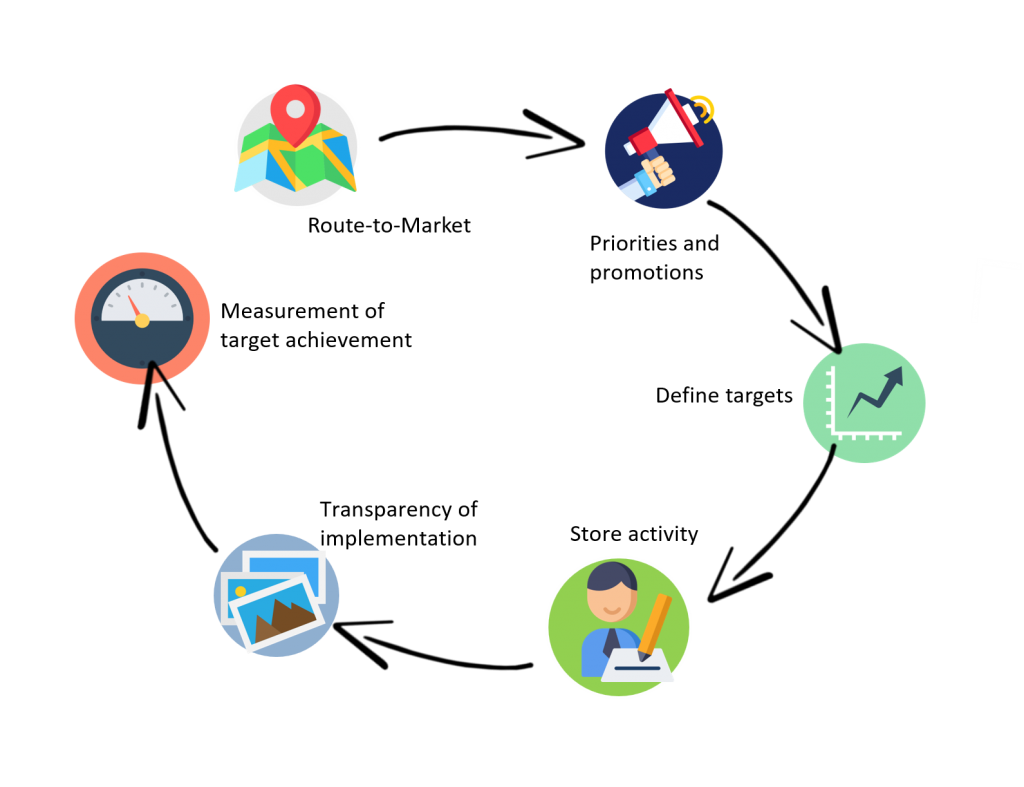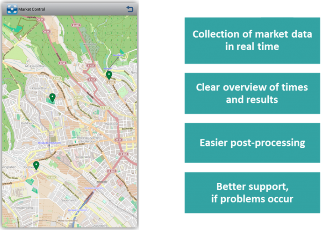 Visit planning stands out due to its interactivity with the sales representatives. You can set new targets out of the on-site observations, deriving new need for action. Receiving visit data in real time, you can react immediately to particular incidents. Especially in case of upcoming promotions interacting with your sales representatives is inevitable.